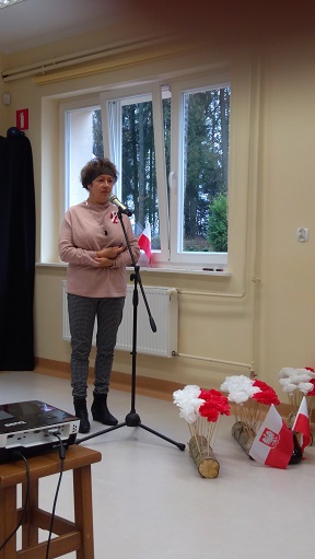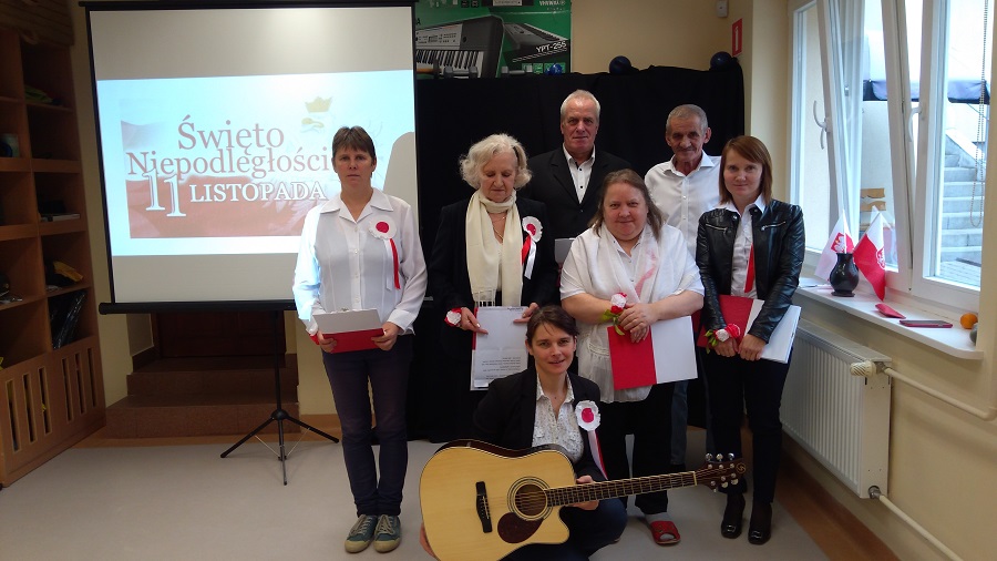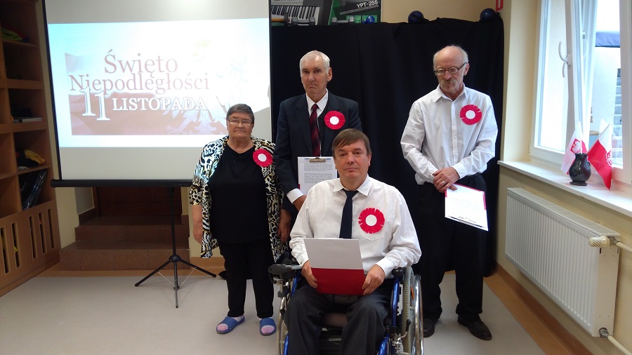 6 listopada w naszym Domu obchodziliśmy Święto Niepodległości. Spotkanie rozpoczęliśmy od wspólnego odśpiewania Hymnu, uczestnicy Jan, Jadwiga, Eugeniusz i Romuald przypomnieli nam w krótkim rysie historycznym genezę Święta Niepodległości. W montażu słowno - muzycznym o tematyce patriotycznej zaprezentowali się: Jolanta, Agnieszka, Marian, Teresa i Danuta. Obejrzeliśmy też fim pt. "Droga do niepodległości", a spotkanie zakończyliśmy wspólnym śpiewaniem pieśni patriotycznych.