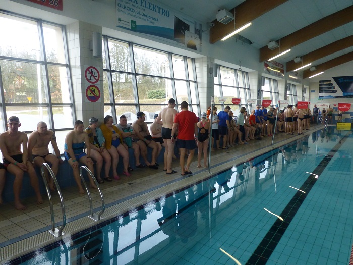 W dn. 12 lutego 2020r na pływalni hali widowiskowej "Lega" w Olecku odbyły się V Zawody Pływackie Osób Niepełnosprawnych. W zawodach wzięło udział ponad 80 osób niepełnosprawnych z wielu ośrodków, m.in.: Białegostoku, Suwałk, Węgorzewa, Kętrzyna, Olecka. Nasz ośrodek reprezentowali Elżbieta, Lilla, Sebastian i Dariusz wraz z opiekunem Ryszardem Jagolicz. Celem zawodów była integracja środowisk osób niepełnosprawnych, popularyzacja pływania oraz przegląg umiejętności pływackich i wyłonienie najlepszych pływaków.
