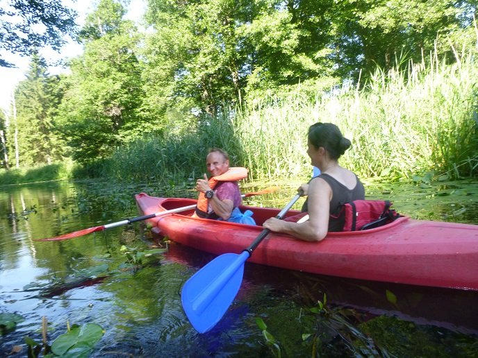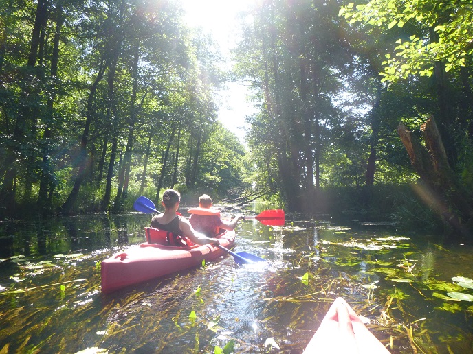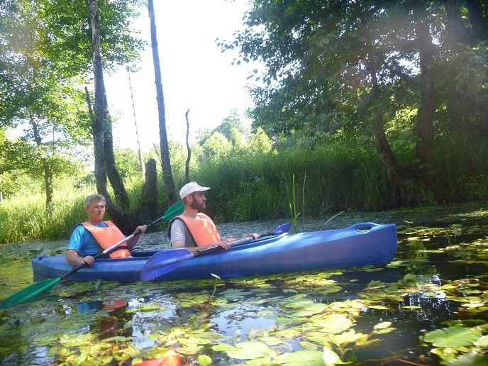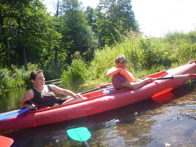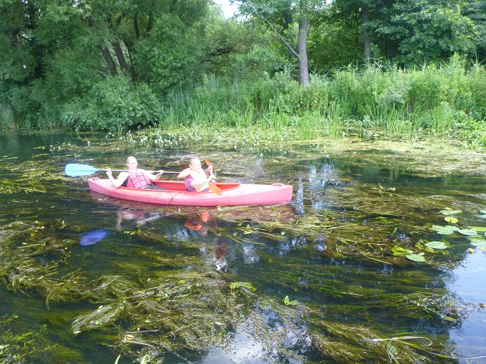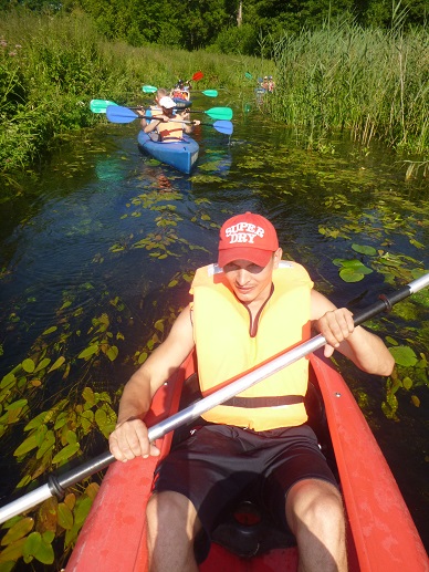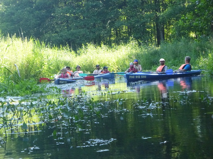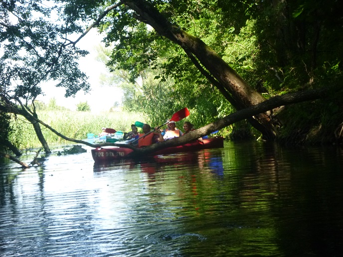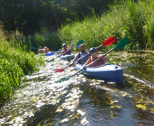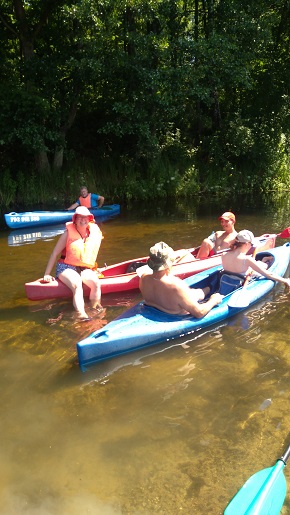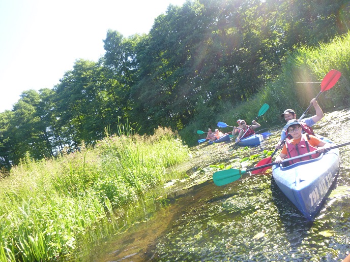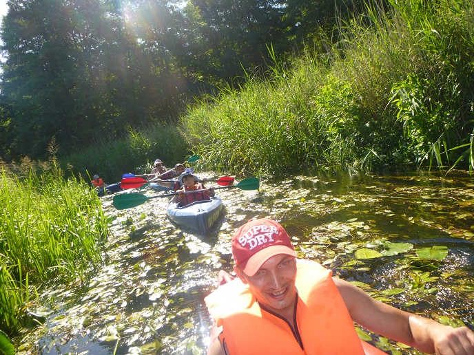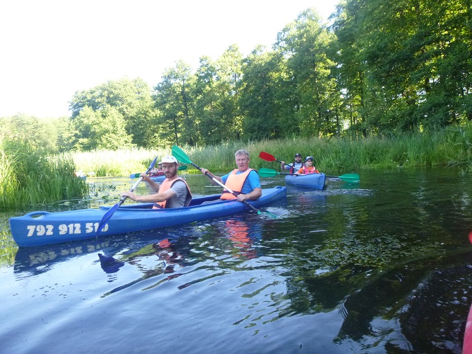 Korzystając z uroków lata oraz pięknej, słonecznej pogody 20 lipca zorganizowaliśmy spływ kajakowy rzeką Łaźna Struga. Wypłynęliśmy 6 kajakami w składzie Damian - Ewa, Robert - Magda, Darek - Zygmunt, Tadeusz - Alicja, Ela - Ryszard, Sebastian - Kasia. Szlak rozpoczął się na skraju Puszczy Boreckiej we Wronkach, a zakończył w Połomie. Meandrująca rzeka płynąc w ciągle zmieniającym się krajobrazie sprawiła, że mieliśmy wrażenie, że przebywamy w coraz to nowych uroczyskach. Odcinek 15 km pokonaliśmy w przeciągu 4 godzin (oczywiście z malutką przerwą na odpoczynek;-)). Po drodze napotkaliśmy na wiele przeszkód w postaci wiszących konarów, wąskich przesmyków lub powalonych drzew. Na mecie czekało na nas ognisko z kiełbaskami. Wszyscy, bez wyjątku, byli bardzo zadowoleni i już nie możemy się doczekać kolejnej wyprawy. Ahoj przygodo!
