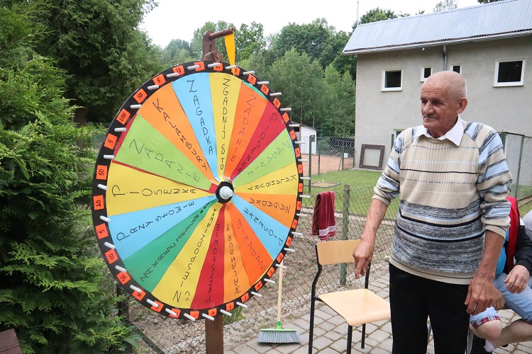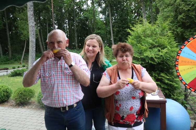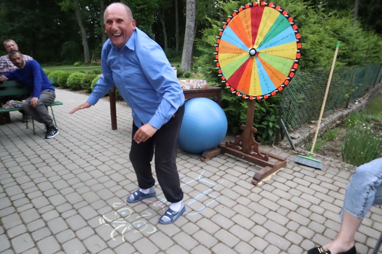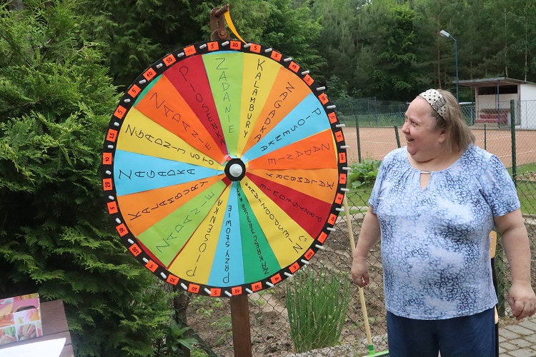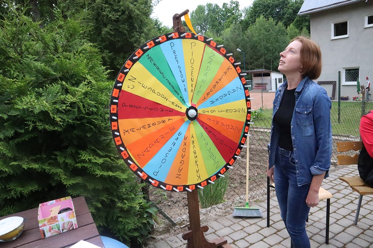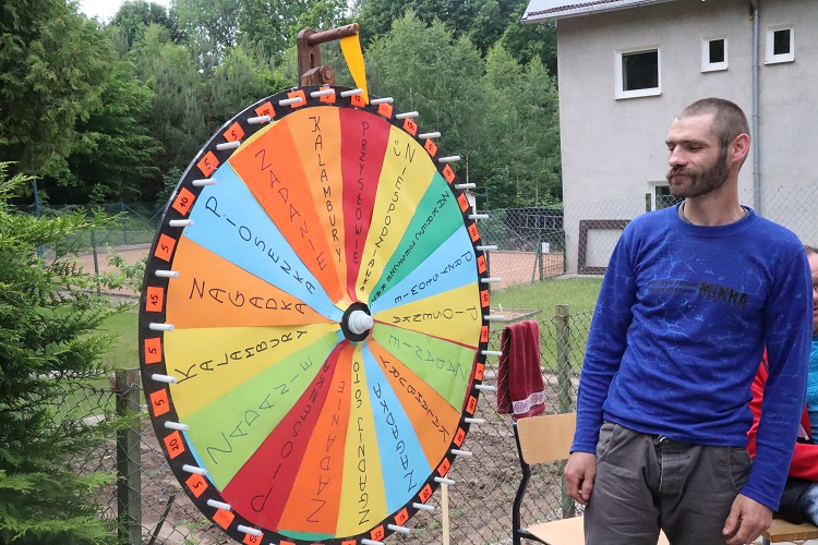 Wspaniale się bawiliśmy podczas zajęć integracyjnych, podczas których losowaliśmy zadania do wykonania. I jako, że fortuna kołem się toczy, trafiały się zadania łatwiejsze i trudniejsze: śpiewanie piosenki, recytacja wierszyka, zrobienie pompek czy zjedzenie ciasta bez użycia rąk. Śmiechu było co nie miara!!! A najbardziej podobała nam się konkurencja - zjedzenie cytryny z pięknym uśmiechem ;-). Kadra też się musiała wykazać podczas wykonywania zadań i okazało się, że wszyscy mamy dużo dystansu do siebie i potrafimy się świetnie bawić.