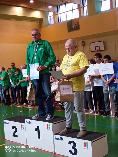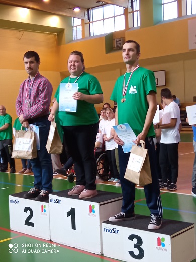 Nasz Dom reprezentowali: Damian, Sebastian, Renata, Teresa, Marian, Henry i Romuald pod czujnym okiem trenera Ryszarda Jagolicza. Braliśmy udział różnych konkurencjach sportowych: rzucie do celu, rzucie piłką lekarską oraz rozgrywkach szachowych.